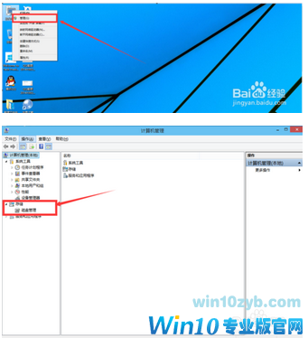 1、进行分区之前,我们必须进入系统的磁盘管理。进入磁盘管理发方式有两种。一种是通过电脑属性,进入磁盘管理。第二种是直接右键点击windows键(windows+X)选择磁盘管理。