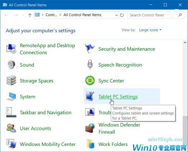 要开始使用,请打开控制面板并选择平板电脑设置。