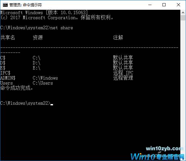 嗯,哪怕咱们在文件夹上用鼠标右键选择“停止共享”,系统默认它们还是共享状态(尤其是家庭版,根本关不掉),不信的话,在管理员模式下的命令提示符中,用net share查查看?