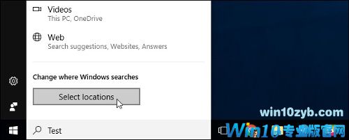 要改进搜索结果,请单击菜单中的“过滤器”选项,然后单击菜单底部的“选择位置”按钮。从这里您可以选择索引的搜索位置,Windows将自动扫描并跟踪这些目录,构建搜索索引,当您通过开始菜单进行搜索时。默认情况下,它将索引用户帐户目录中的数据。