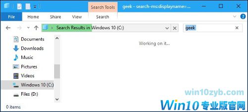 然后在文件浏览器的右上角的搜索框中输入搜索文本,然后按Enter键。 如果您搜索索引的位置,您将立即获得结果。 如果您要查找的位置未被索引,例如,如果搜索整个C盘,Windows将在该位置查找所有文件时,将会看到一个进度条。