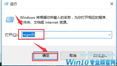 1.按“Win + r”键打开“运行”,输入“regedit”命令,点击“确定”。