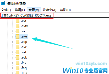 2.打开注册表编辑器界面,在左侧的注册表树依次展开到以下分支,HKEY_CLASSES_ROOT\.exe