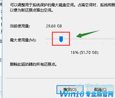 8、我们点击配置,可以设置还原点所耗用硬盘空间的大小,如下图所示