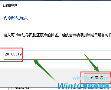 5、输入你要创建还原点的备份名称,一般建议以日期命名,点击创建按钮,如下图所示