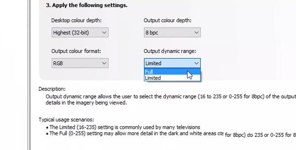 在右侧面板上,滚动一点以查找“输出动态范围”下拉列表。