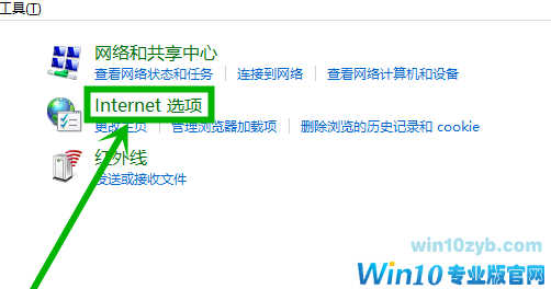 4、在打开的【网络和Internet】界面,点击【Internet选项】选项