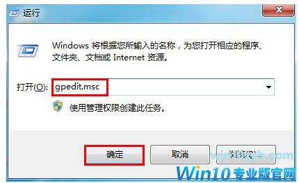 1、按下“win+r”组合快捷键打开运行窗口,然后在运行窗口中输入“gpedit.msc”,点击确定。