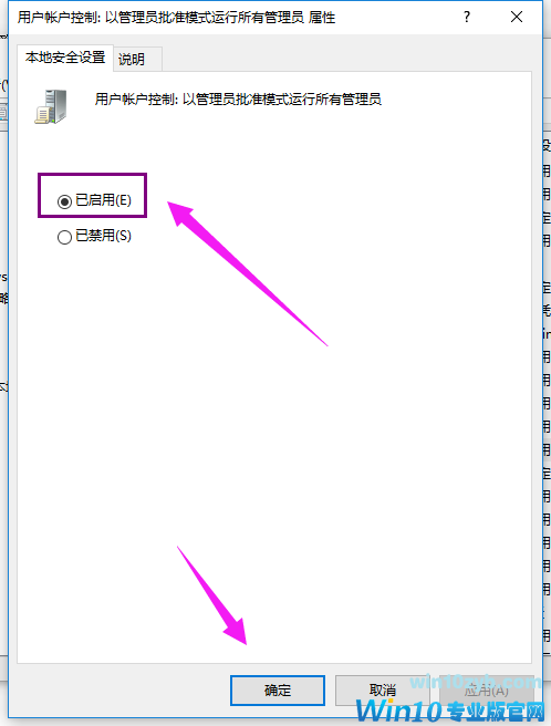 4、勾选已启用,然后点击应用,即可打开管理员账户。