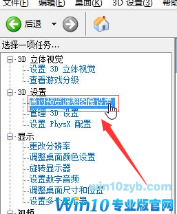 5、在左侧点击【3D 设置】-【通过预览调整图像设置】。