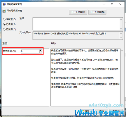 7、将带宽限制调整为0%,然后点击确定保存。