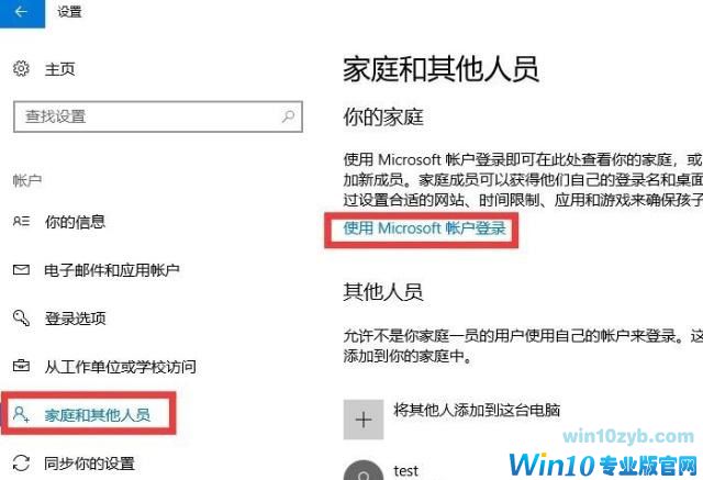 1、快捷键win+i打开“Windows设置”界面,点击“账户”,切换到“家庭和其它成员”选项卡,点击“使用Microsoft账户登录”按钮,用Microsoft账户登录Windows10系统。