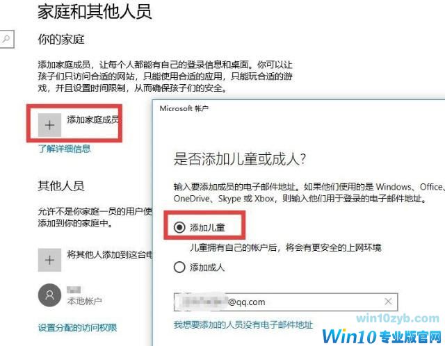 2、登录Windows账户后,点击“添加家庭成员”按钮,如果没有儿童账户,则需要注册账户。
