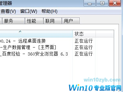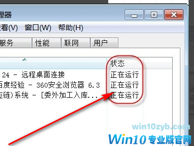 3、启动任务管理器后,在“应用程序”选项卡列出了当前正在运行的并拥有任务栏按钮的所有程序,此中包含一个“状态”列,显示“正在运行”或“停止响应”等状态。
