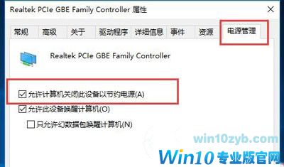 4、在电源管理一栏里面,把”允许计算机关闭此设备以节约电源“前面勾选去掉;