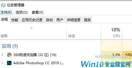 1、按键盘上的三个键,Ctrl+Shift+Esc来启动任务管理器;