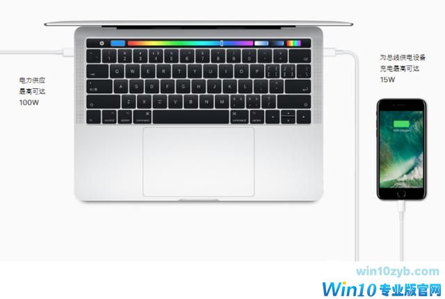 Thunderbolt 3还可以为设备提供更强的供电,支持100W电力供给,并且可给设备充电功率最高达15W。