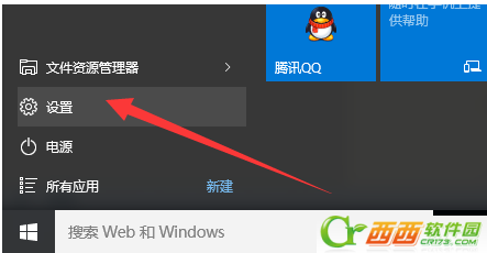 1、点击桌面左下角的“Windows”按钮,从打开的扩展面板中找到“设置”按钮点击进入。