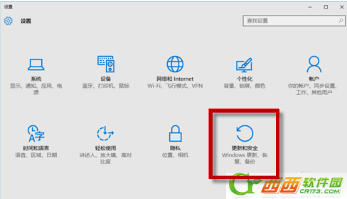 2、并从打开的“设置”界面中,找到“更新和安全”项点击进入详细设置界面。