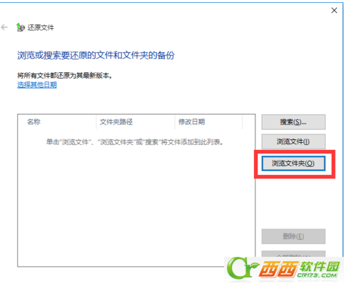 2、从打开的“还原文件”窗口中,点击“浏览文件夹”按钮,并从打开的窗口中选择“备份文件”所在的文件夹进行添加。