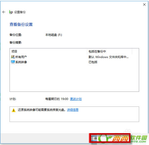 7、最后再确认一下所设备的备份选项,正确无误后点击“保存设置并进行备份”按钮。