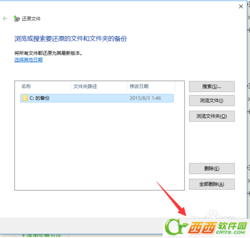 3、待返回“还原文件”界面后,选中要恢复的备份文件夹,点击“下一步”按钮。