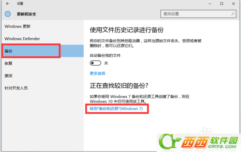 3、待进入“更新和安全”界面后,切换到“备份”选项卡,点击“转到‘备份和还原(Windows7)”按钮,