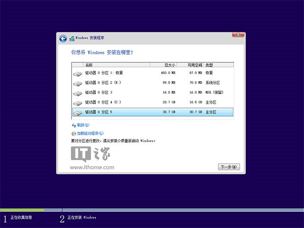 ▲选择(除了当前系统分区和“系统保留”分区之外的)其他分区,至少16GB剩余空间,然后点“下一步”。