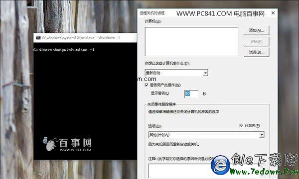 除了可以使用Win10定时关机命令实现Win10电脑定时关机外,大家还可以使用shutdown -i命令,启动Win10快捷关机面板,里面可以非常方便的添加定时关机任务,如下图所示。