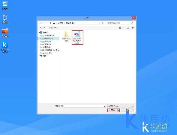 5、接下来进入到u盘目录下,点击选中ghost win10系统iso镜像文件,然后点击“打开”按钮将其添加进来,之后自动会自动加载为gho文件,如图所示: