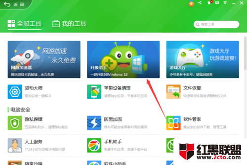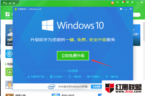 打开后就出现win10免费升级,点击中间绿色的“立即免费升级”