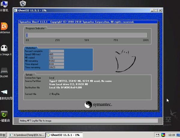 封装执行过程就不截图了,封装完后,再做一个系统gho