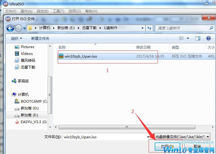 找到刚才下载的Win10zyb_Upan.iso选择此文件,点击打开。
