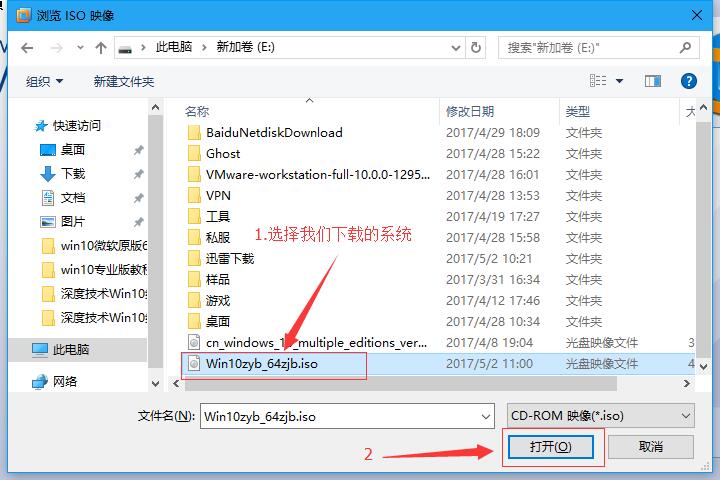 5、定位到我们选择win10 iso的目录并选择iso文件。