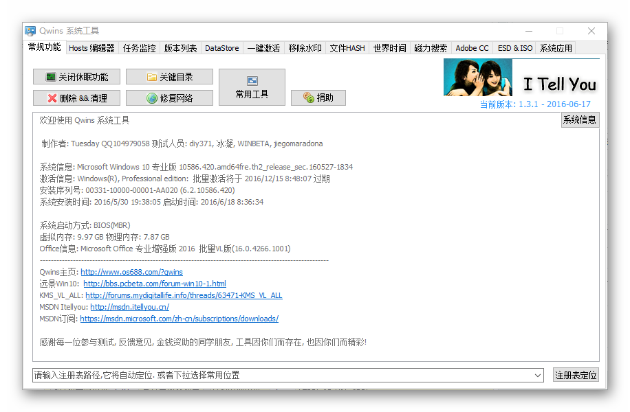 Qwins 系统工具,强大实用的Win10小工具,集成移除水印、一键激活系统、Office、KMS续期、ESD转换、磁力搜索、文件HASH、系统信息、系统版本、系统应用、Hosts编辑、Adobe CC激活等诸多功能。