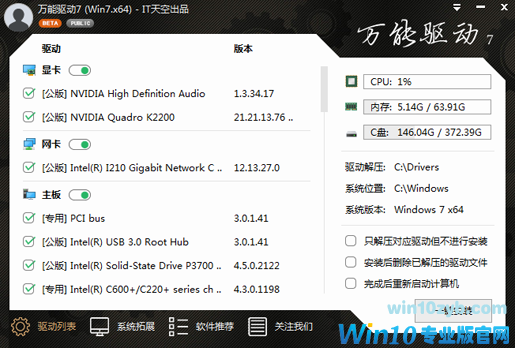 【万能驱动7】定位:驱动覆盖面广,智能精确识别硬件设备,是普通电脑用户离线安装电脑硬件驱动的好帮手,是装机人员、系统工程师、系统维护人员部署系统的最佳搭档。驱动一键到位,便捷装机首选。