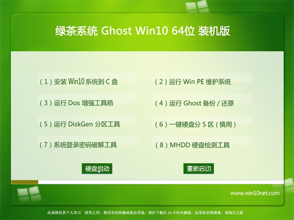 绿茶系统Ghost Win10(64位)装机版2016.06