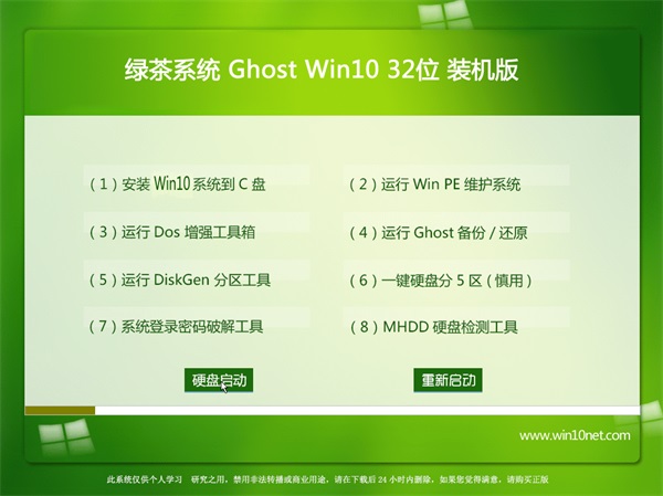 绿茶系统Ghost Win10(32位)装机版2016.06