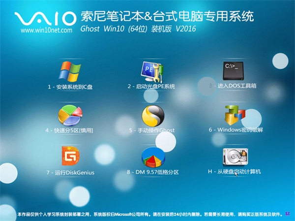 索尼笔记本Ghost Win10(64位)装机版2016.06