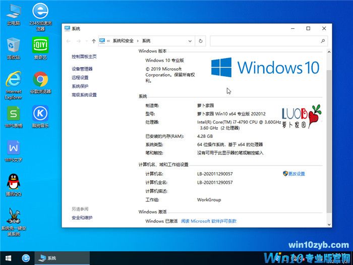 萝卜家园 Windows10 64位 优化精简版 V20