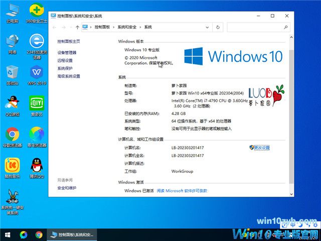 萝卜家园 Windows10 64位 优化精简版 V20