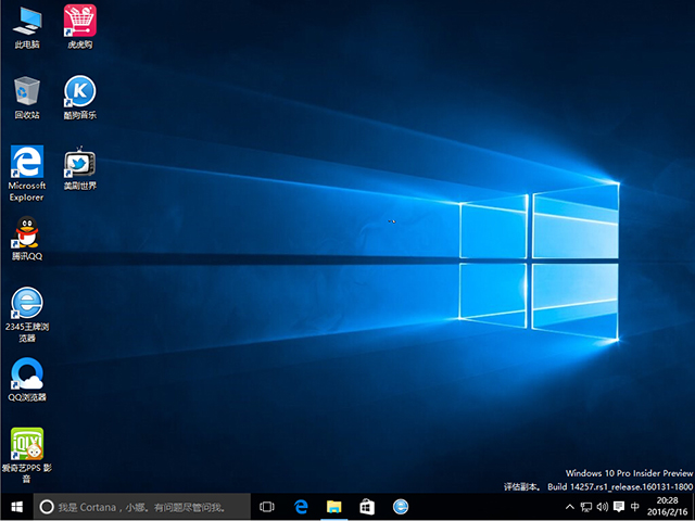 微软现在已经加快了Win10预览版的推送速度,现已向用户推送Windows10 RS1桌面预览版14257。微软在官方博客中表示,目前开发团队已开始着手新功能的开发,不过在本次更新中依然没有新功能加入,新版主要针对已经发现的问题进行修复,为新功能的开发奠定基础。本系统还附带最常用的装机必备软件、QQ等。