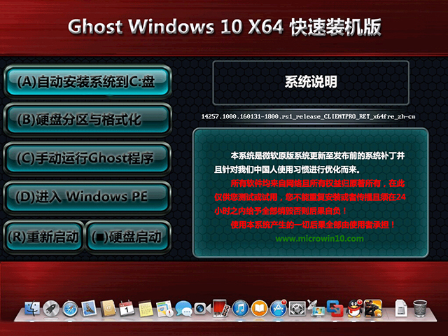 安装注意:进入桌面后请等待安装程序完成后自动关闭,提前关闭会造成系统程序不完整等出错