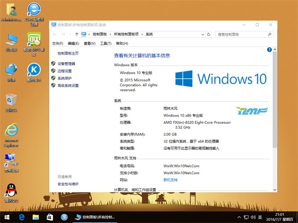 雨林木风 Windows10 32位 官方专业版 V20