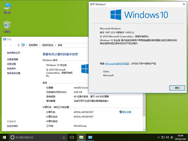 1、源安装盘采用微软官方2016年7月最终发布的专业正式版Win10 14393(x64) - DVD (Chinese-Simplified) 专业版操作系统。原版支持在线升级,更新补丁KB3176927。