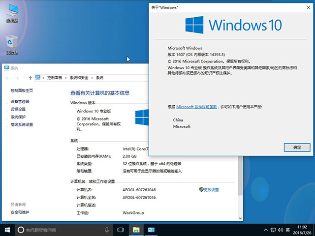 1、源安装盘采用微软官方2016年7月最终发布的专业正式版Win10 14393(x32) - DVD (Chinese-Simplified) 专业版操作系统。原版支持在线升级,更新补丁KB3176927。