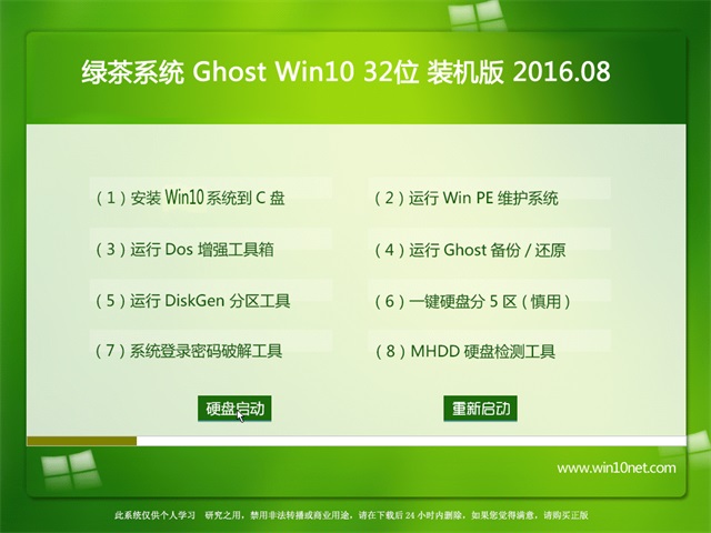 绿茶系统Ghost Win10 X32 装机版 2016.08