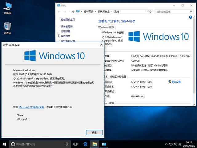 1、源安装盘采用微软官方2016年8月最新发布的专业正式版Win10 Build 14393 1607(64位) - DVD (Chinese-Simplified) 专业版操作系统,增加最新8月26日发布的更新补丁kb3176938。原版支持在线升级。