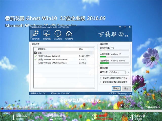 5. 番茄花园Win10x32位特别企业版2016.10版本安装过程会运行自主开发的驱动选择工具,此工具可智能判断所有的电脑硬件型号,最大限度地避免了因驱动冲突而蓝屏的现象。