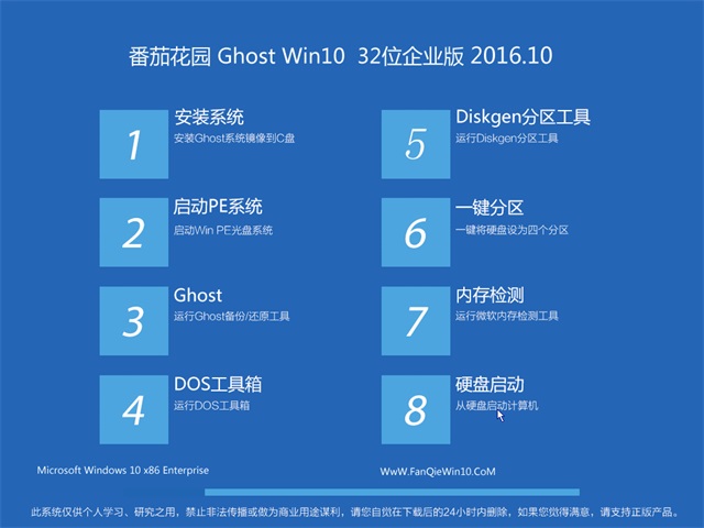 1. 番茄花园Win10x32位特别企业版2016.10版本包含绝大多数的SATA,SCSI,RAID控制器驱动,支持32位处理器,支持双核处理器。